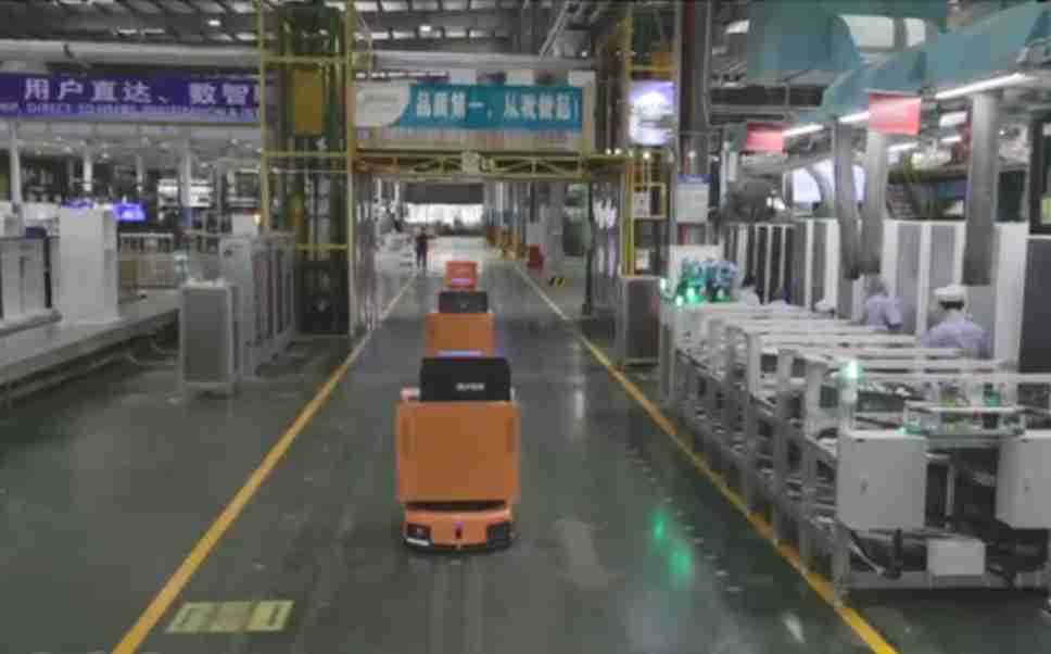 为车载冰箱物流配送打造的智能解决方案,,,包含产中物流通过潜伏举升AMR搬运至线边,,产后成品物流智能仓储,,,流程包含产中物流智能齐套入库,,线边安灯叫料AMR智能配送至线边,,,成品入库、、出库,,通过无人堆高车机器人,,智能仓储管理替代人工作业管理,,,实现更高存储、、更高效率、、更具柔性化的解决方案。。。